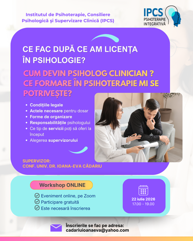 Înscrierile se fac la adresa de email: cadariuioanaeva@yahoo.com